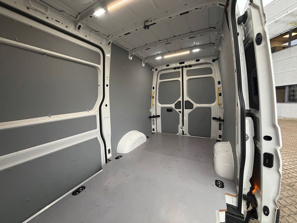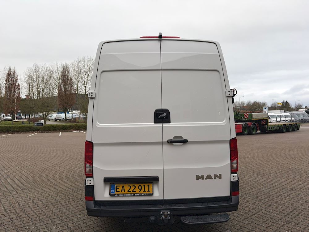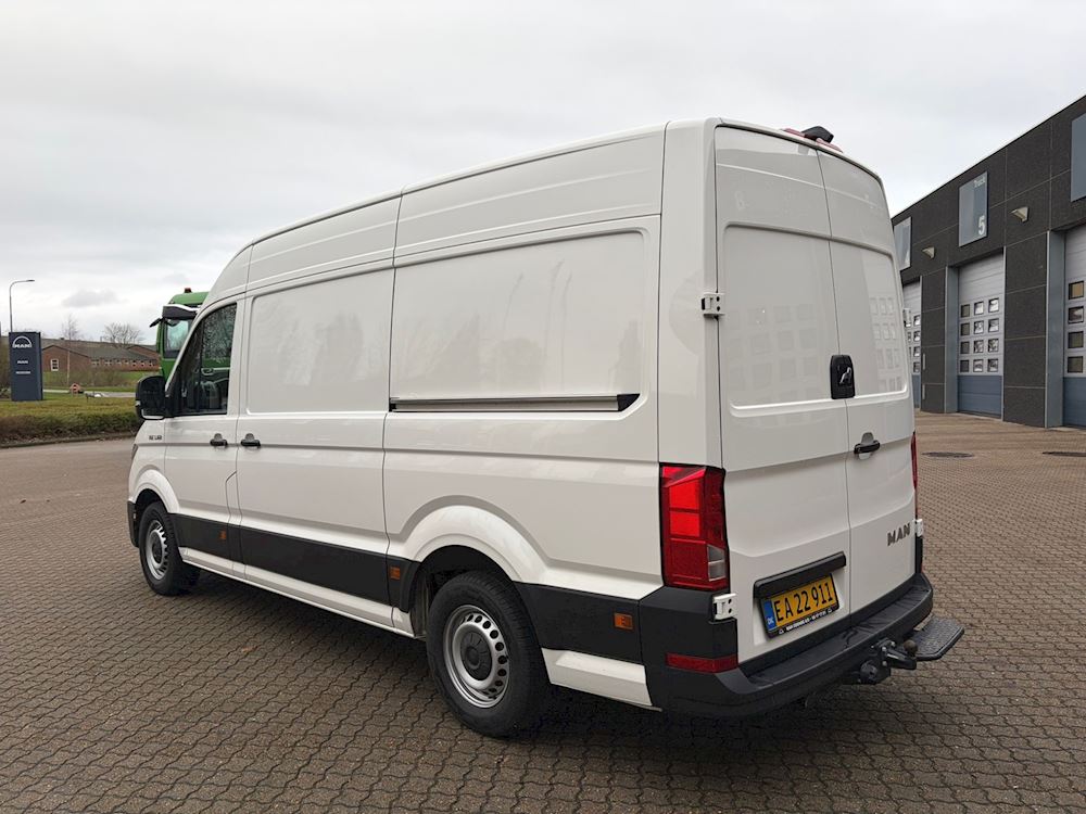 Aflægningsrum over førerkabinen (tilgang fra varerum, Anhængertræk 3500 kg. (samlet vogntogsvægt 7000 kg) Digital radiomodtagelse, Ekstra batteri (AGM) med skillerelæ (520 A/92 Ah) (60 A kontinuerligt/190 A maks.) Fuldautomatisk 2-zonet klimaanlæg "Clima tronic", Komfort Pakke Plus DK, LED forlygter med LED kørelys, Lys- og udsynspakke, MAN Media Van Pakke Business 8'', 4 højttalere, MAN Smartlink (wired og wireless), Pan-Europæisk-eCall Skydedør, venstre, i vare-/passagerrum, Trinbræt bag, halv bredde, kørecomputer, multifunktionsrat, massage i førersæde, el-sidespejle m/varme, varme i rat, motorkabinevarmer, adaptiv fartpilot, udv. temp. måler, sædevarme, dab+ radio, musikstreaming via bluetooth, android auto, apple carplay, regnsensor, bakkamera, dæktryksmåler, esp
