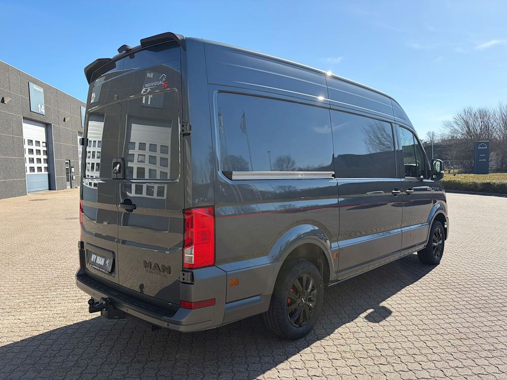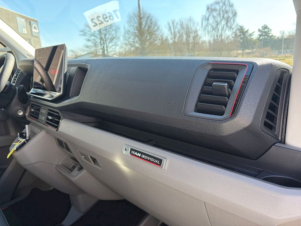 4 højttalere, 2 diskant, 2 basenheder, Aflåseligt handskerum med lys, Eksternt USB type C, kun stik, Klimaanlæg Climatronic i førerkabine, fuldautomatisk, 2 zoner,, Kørelys med aktivering af nærlys (automatisk), "Leaving home" funktion og manuel "Coming home" funktion, LED forlygter med LED kørelys, MAN Media Van Business, MAN Smart Link (både ledning og wireless), Mobiltelefon interface, Online-tjeneste, med OCU, med Head Unit-kodning, uden WFS-forbindelse, Opbevaringspakke 2: Tagrum med to DIN porte og læselampe, Pan-Europæisk-e Call, Regionskode ECE til radio, Stemmestyring (kun engelsk), Uden navigationssystem, Vinduesvisker intervalrelæ med lys- og regnsensor
